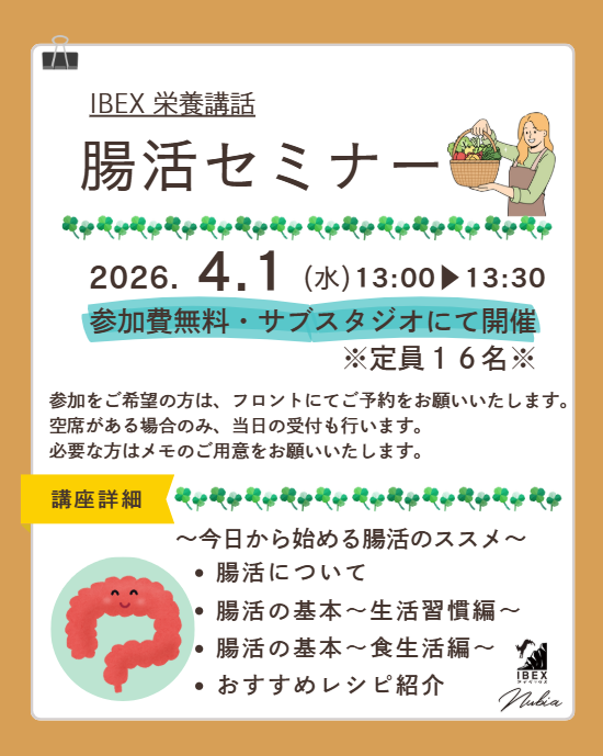 疾病予防運動施設IBEXは、会員様に日常では味わうことのできない感動体験をもたらします。専門スタッフによる会員様一人ひとりにあわせたエクササイズのほか、リラクゼーション・食育・余暇活動を通して、しなやかな心とカラダに調整し、充実した人生を支援します。
