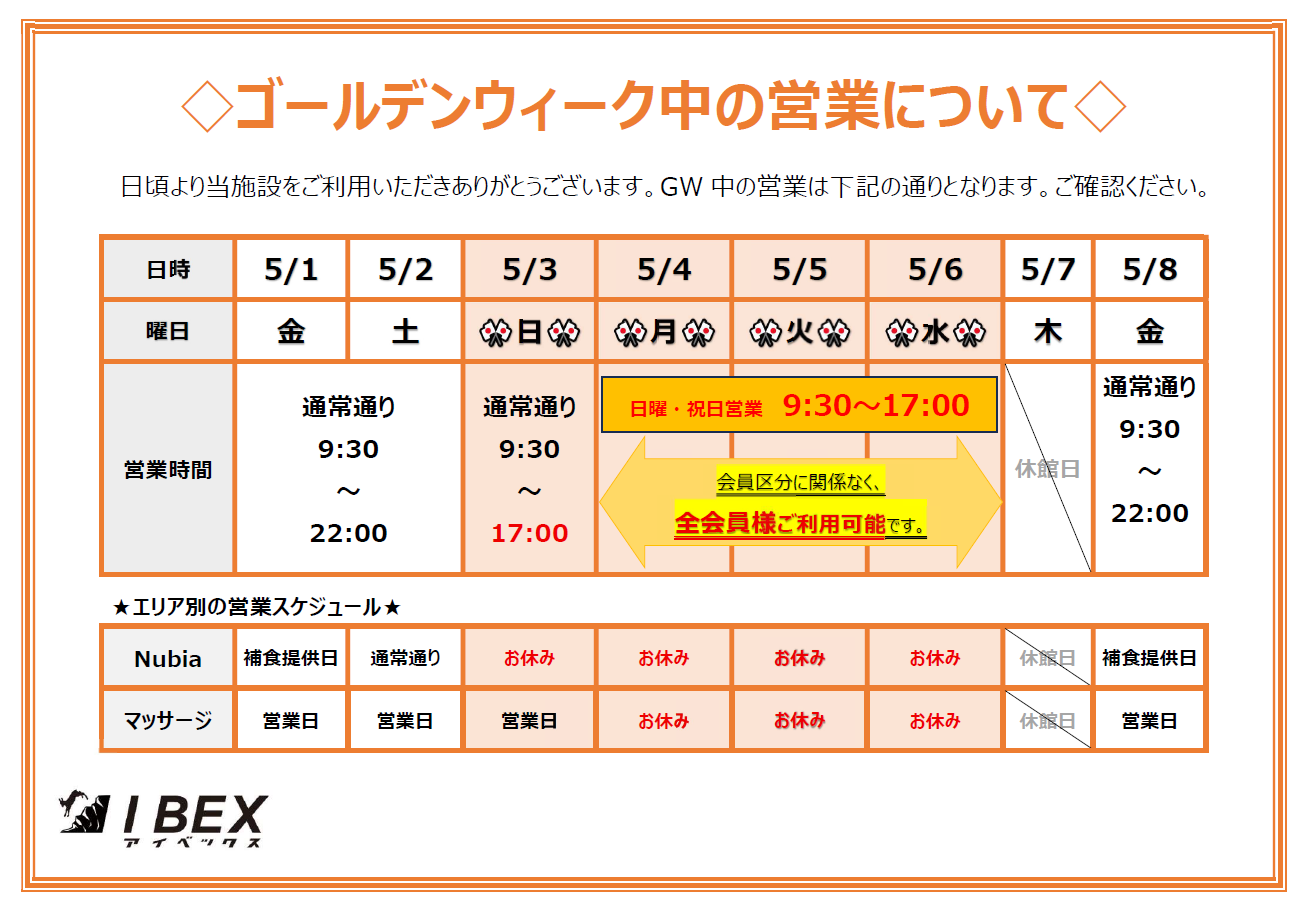 ゴールデンウィーク中の営業について