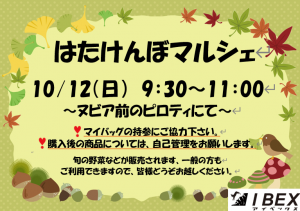 はたけんぼマルシェ開催について event 2025.10.06 いつもご利用いただきありがとうございます。 下記の予定にてイベントを開催いたします。 イベント:はたけんぼマルシェ 日 時:10月12日(日) 9:30~11:00 場 所:ヌビア前ピロティ 会員様以外の方でもご利用いただけますので、是非お越しください。 マイバック持参にご協力下さい。 購入後の商品については、自己管理をお願い致します。