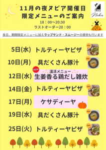 ヌビアからのお知らせ event 2025.11.04 いつもご利用ありがとうございます。 11月は上記の内容で補食提供を行います。 今月も限定メニューを各種ご用意しております。 運動前後のエネルギー補給にいかがでしょうか? 事前予約も承ります。ご利用の際はフロントの方にお越しください。 皆様のご来館お待ちしております。