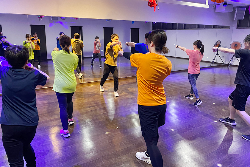 リズムに合わせてボクシングの動作を行っていきます。上半身メインで動く有酸素運動のため初心者にもおススメです。