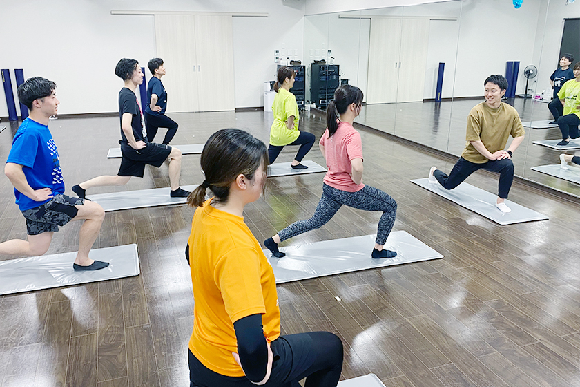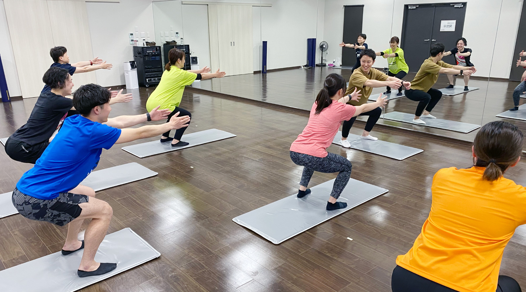 プログラムの中で、有酸素メインに筋トレ、ストレッチを行います。主に体脂肪燃焼を目的にしています。週ごとに内容が変わりますので飽きずに楽しく参加することができます。