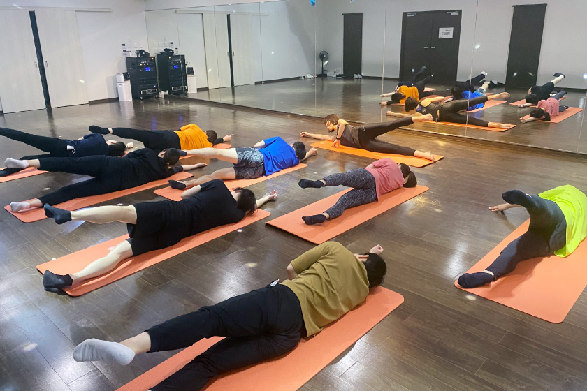 裸足で行うボディメイクエクササイズです。バレエ・フィットネス・ヨガの動きをバランスよく組み合わせたもので、姿勢改善、全身の筋力アップ、柔軟性の向上に効果的です。