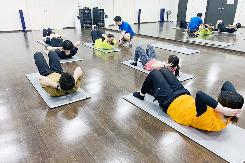 マシンでは鍛えることが難しい体幹(お腹・背中)をマット状で鍛えていきます。自宅でもできる運動を取り入れています。